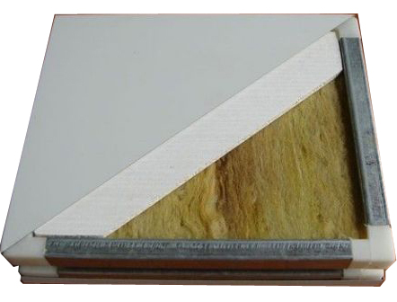 巖棉復合板兩面采用鋼板,四周采用冷拉型材框架(或塑框),內填巖棉(或硅酸鋁棉)膠合成型,該產品表面平整、美觀、隔音絕熱、保溫抗震、防火性能好幾何尺寸準確、安裝方便、省時省工。